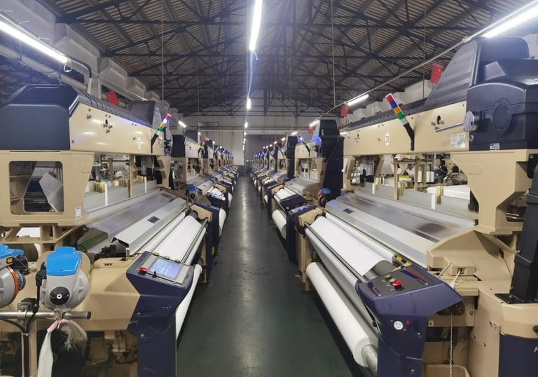 Equipped with large-scale water-jet, air-jet, and jacquard weaving capacity to support stable fabric construction and consistent bulk production.